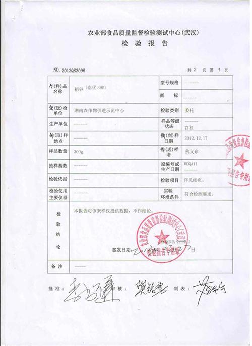 2013年湖南審定,編號:湘審稻(dào)2013027選育單位:湖南金稻種業有限公司(sī)、廣東省農業科學院(yuàn)水稻研(yán)究所(suǒ)