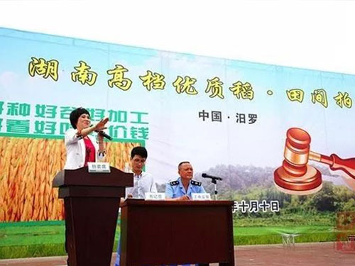 10月10日,正值湖南雙季晚稻(dào)開鐮收割之際,全國首次稻穀田間拍(pāi)賣活動在汨羅市鄉村熱烈舉辦。此次活動中糧米(mǐ)業(yè)(嶽陽)有限(xiàn)公司、湖南糧食集團等32家加工企業(yè)到現場參與拍賣,其中大荊鎮東文村的泰(tài)優390被拍出(chū)182元每百斤的高價。